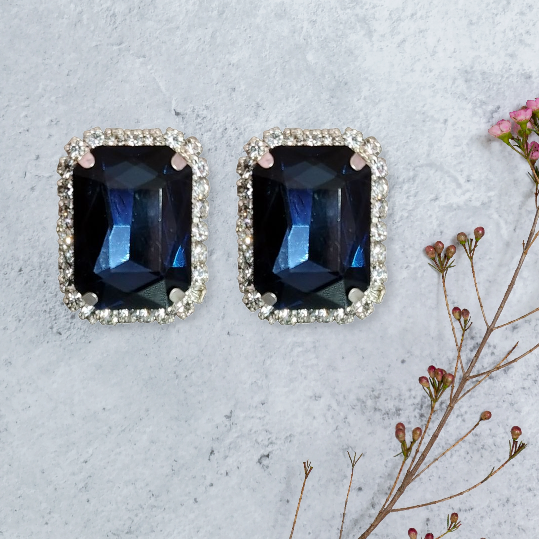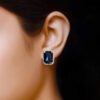 Elegance Rectangular Sapphire Halo Stud Earrings